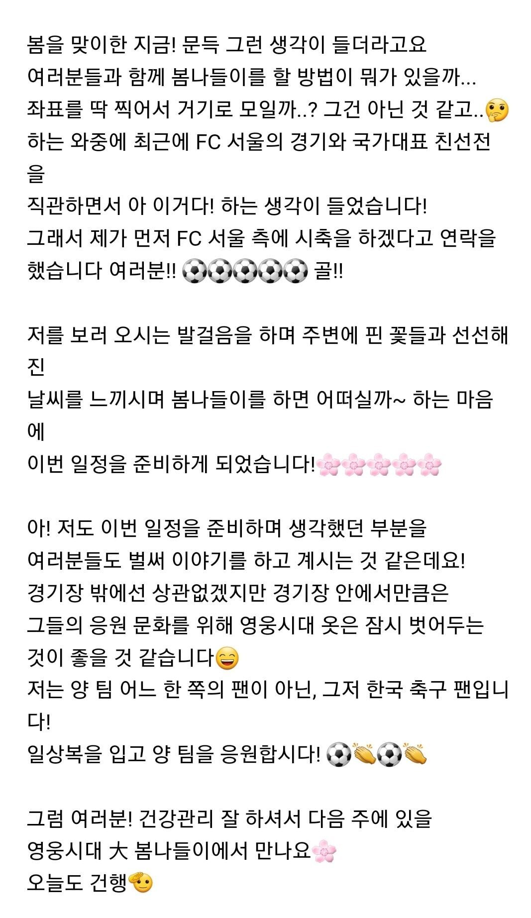 심지어 오늘 FC 서울 굿즈 구매해서 착용하신 분들도 엄청 많다고 함 진심으로 즐길 줄 아는 분들