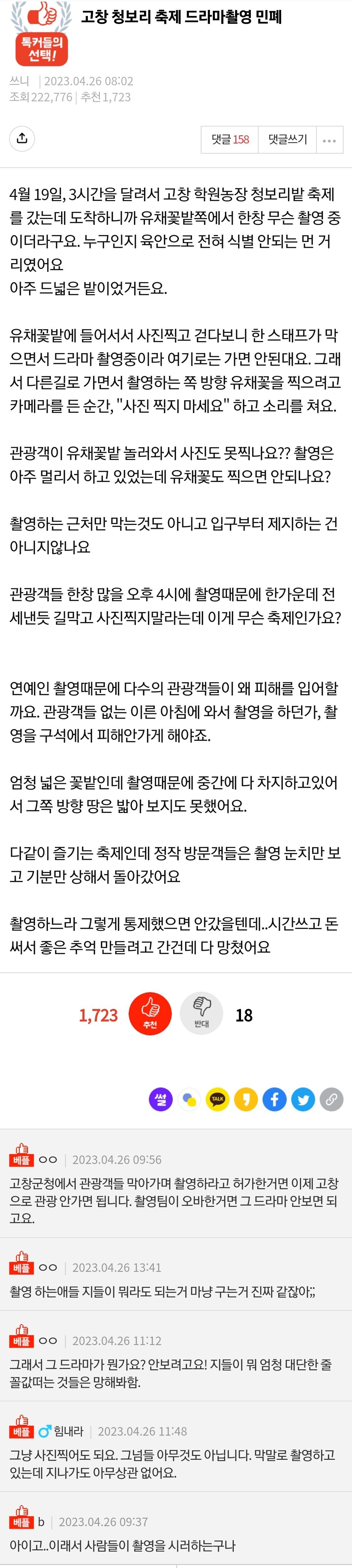 고창 청보리 축제 드라마촬영 민폐 | 네이트 판