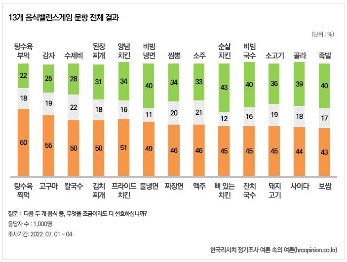 가장 반반싸움에 가까운 첨예한 대립 문제는 족발Vs.보쌈, 뼈치킨Vs.순살치킨 밸런스로 드러남