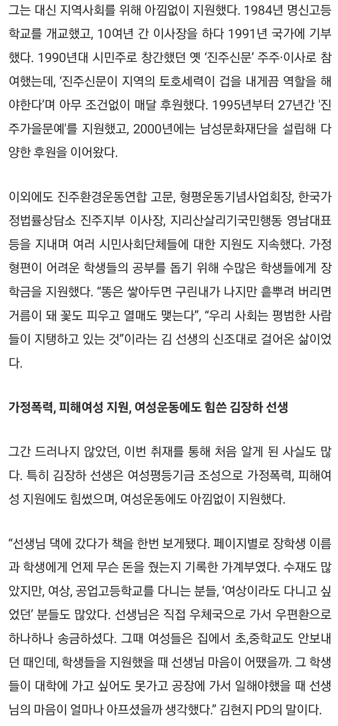 그 지역사회를 위해 평생을 헌신하신 분의 얘기를 담은 다큐