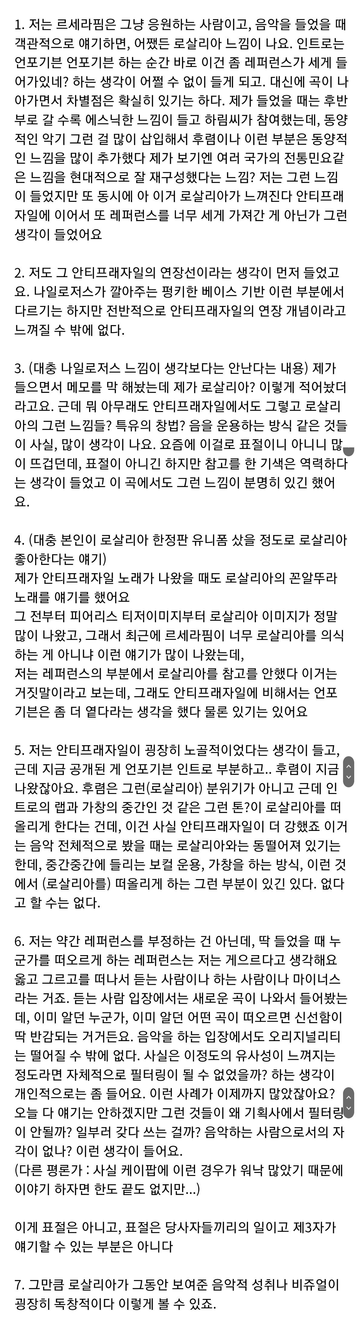 + 로살리아 유사성 관련 평론가들 후기 모음