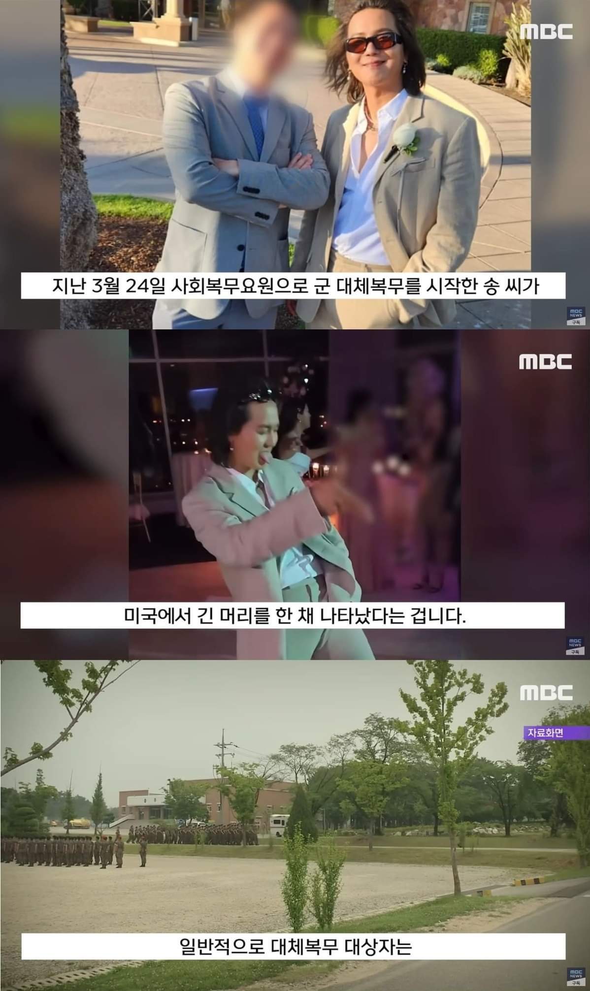 훈련소 입소 없이 대체 복무, 대체 복무 중 장발, 군 복무 중 허가 받고 해외 출국 다 가능하다고는 함