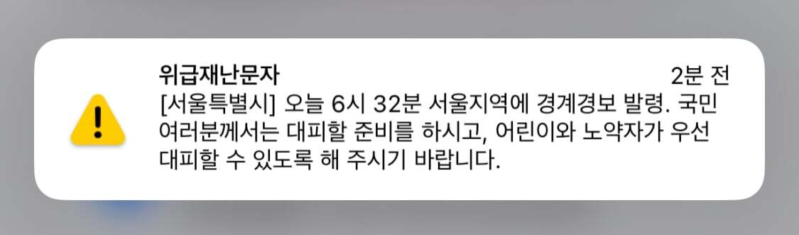 아침에 6시쯤 서울지역 경보음 싸이렌 소리 이유