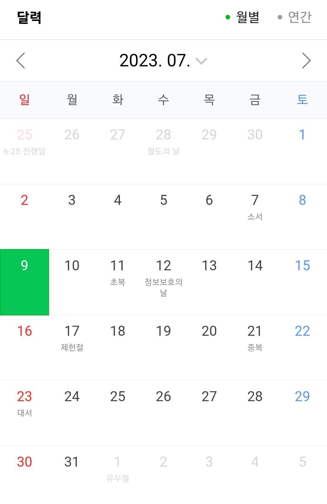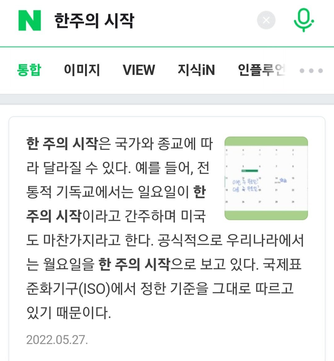달력이 일요일 시작이니 이번주라고 하는 사람