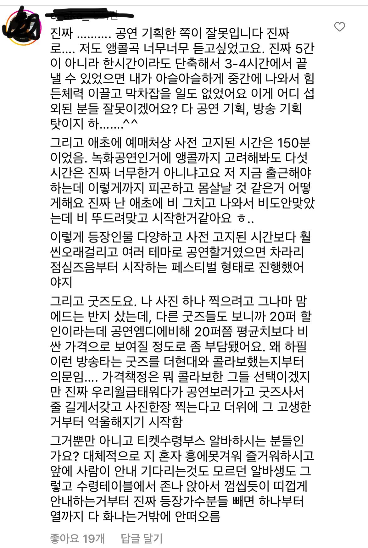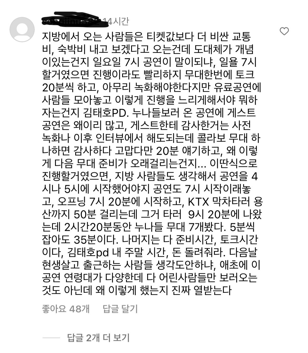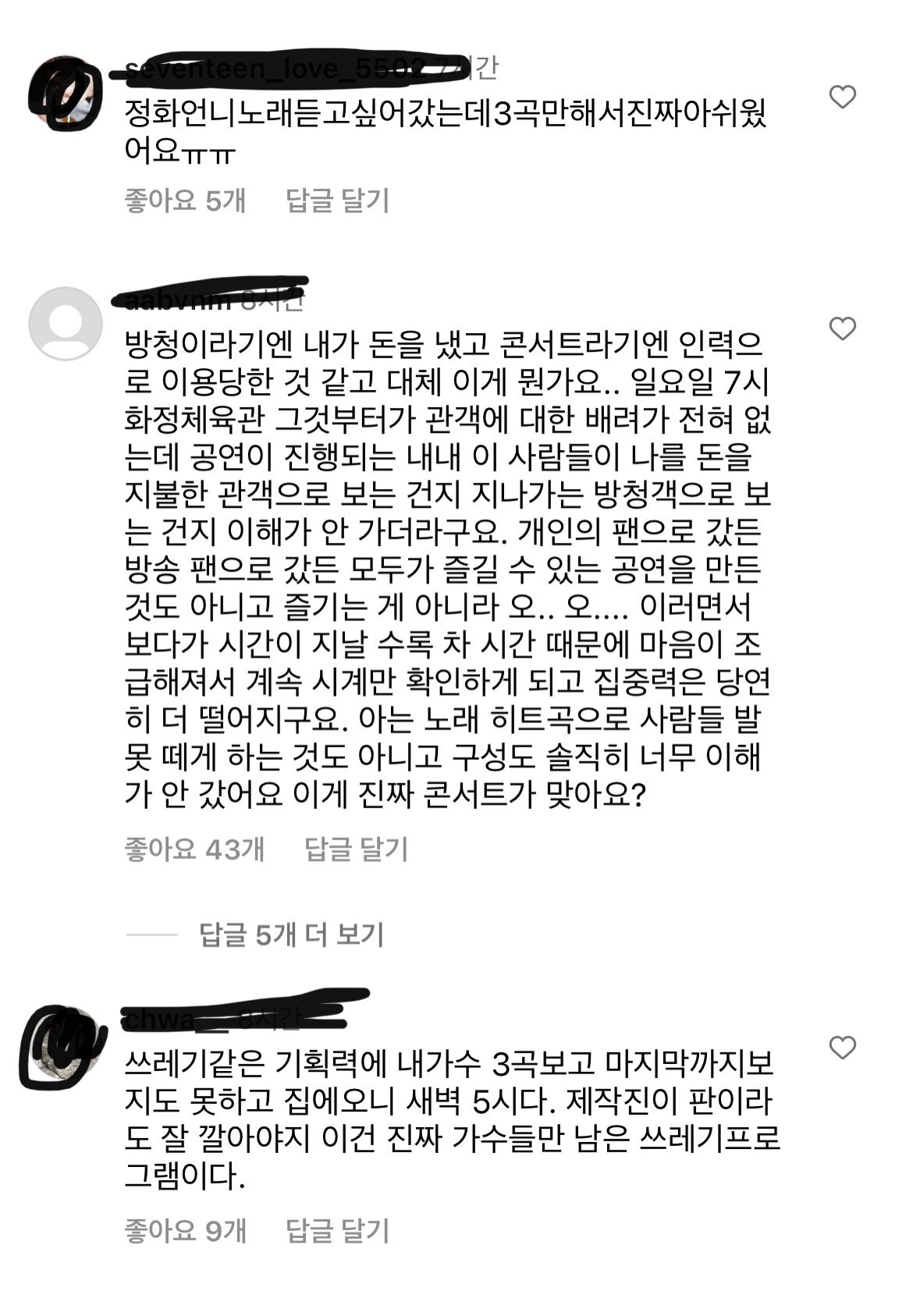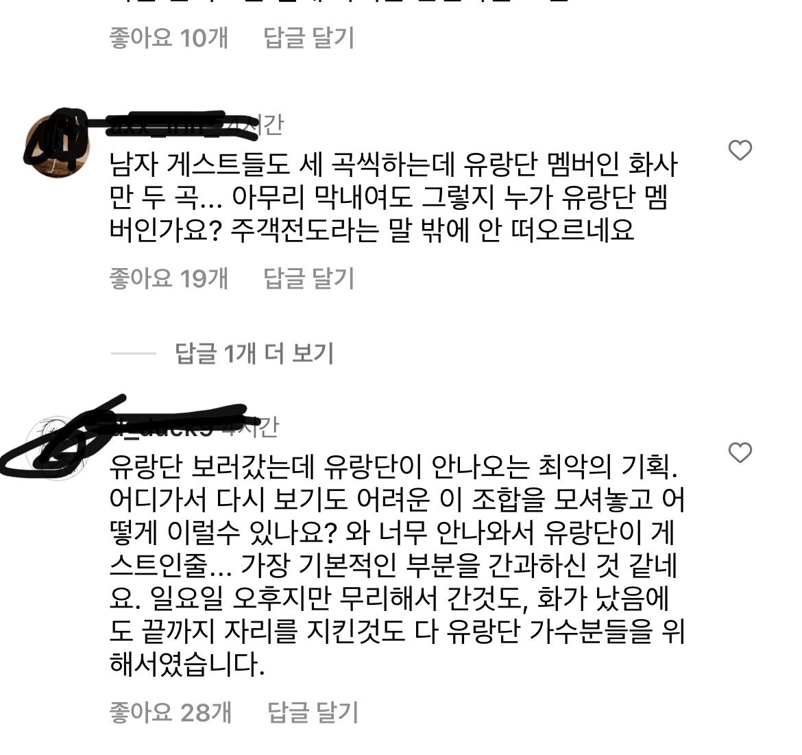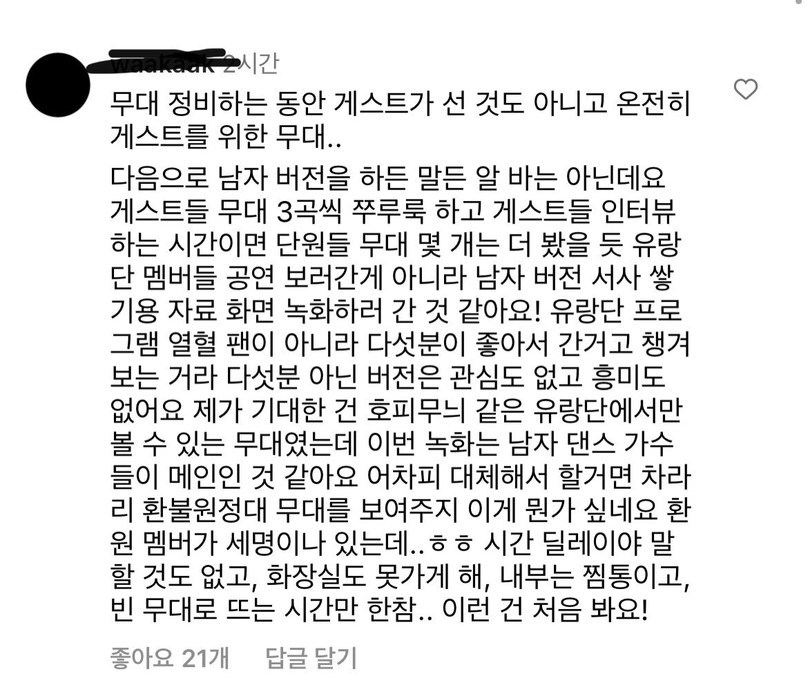 댄스가수유랑단 인스타 댓글 상황