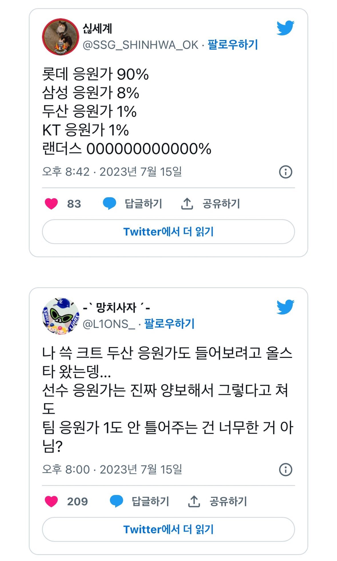 올스타전 경기 끝나고 하는 불꽃놀이 중에도 내내 롯데 응원가만 나왔다고 함