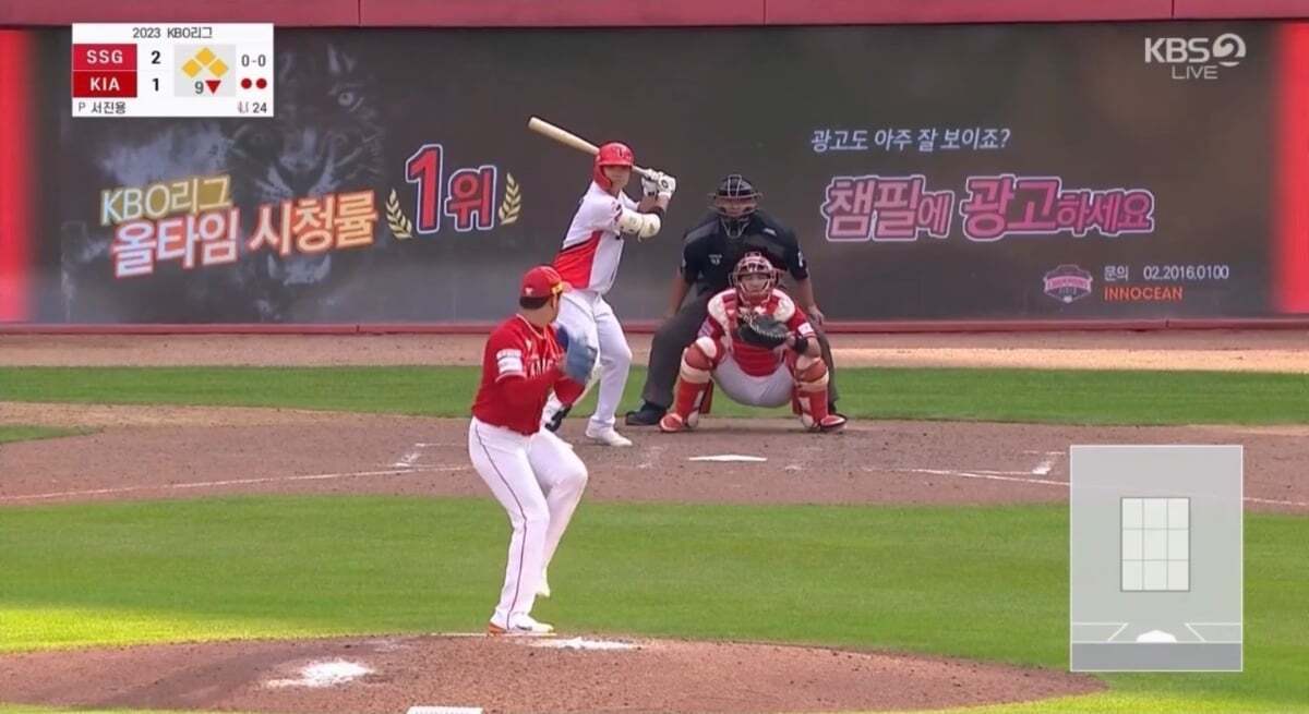 주자가 꽉 들어찬 만루 상황일시에는 9푼대로 내려가는
