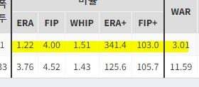 (오늘거 반영전인데 오늘도 주자 존나 나가서 WHIP더 올라갔을거임)