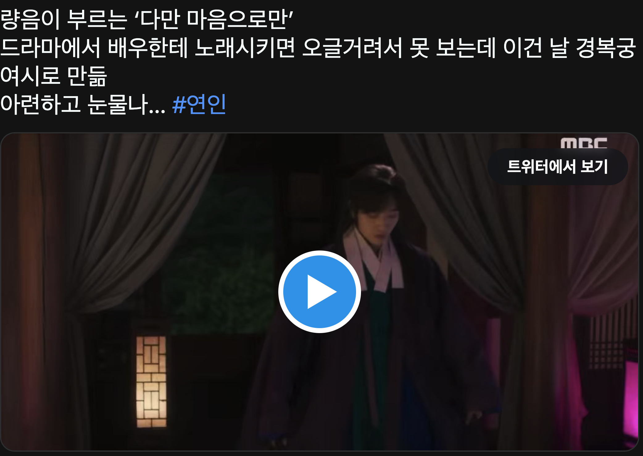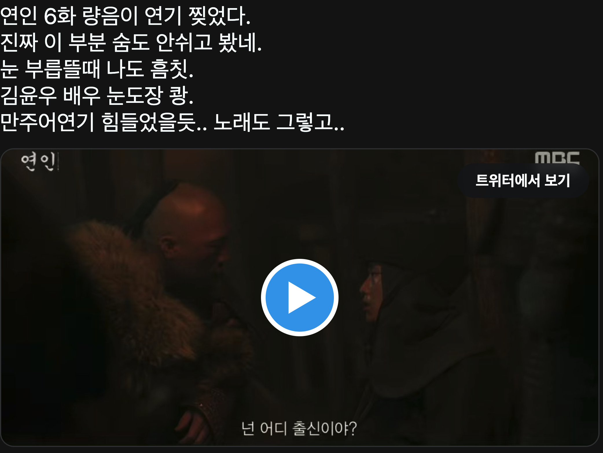 연인 드라마 MBC 금,토 9시 50분 슬프고 아련하고 웃기고 재밌고 배우들 열연쩌니까 다들 츄라이 츄라이!