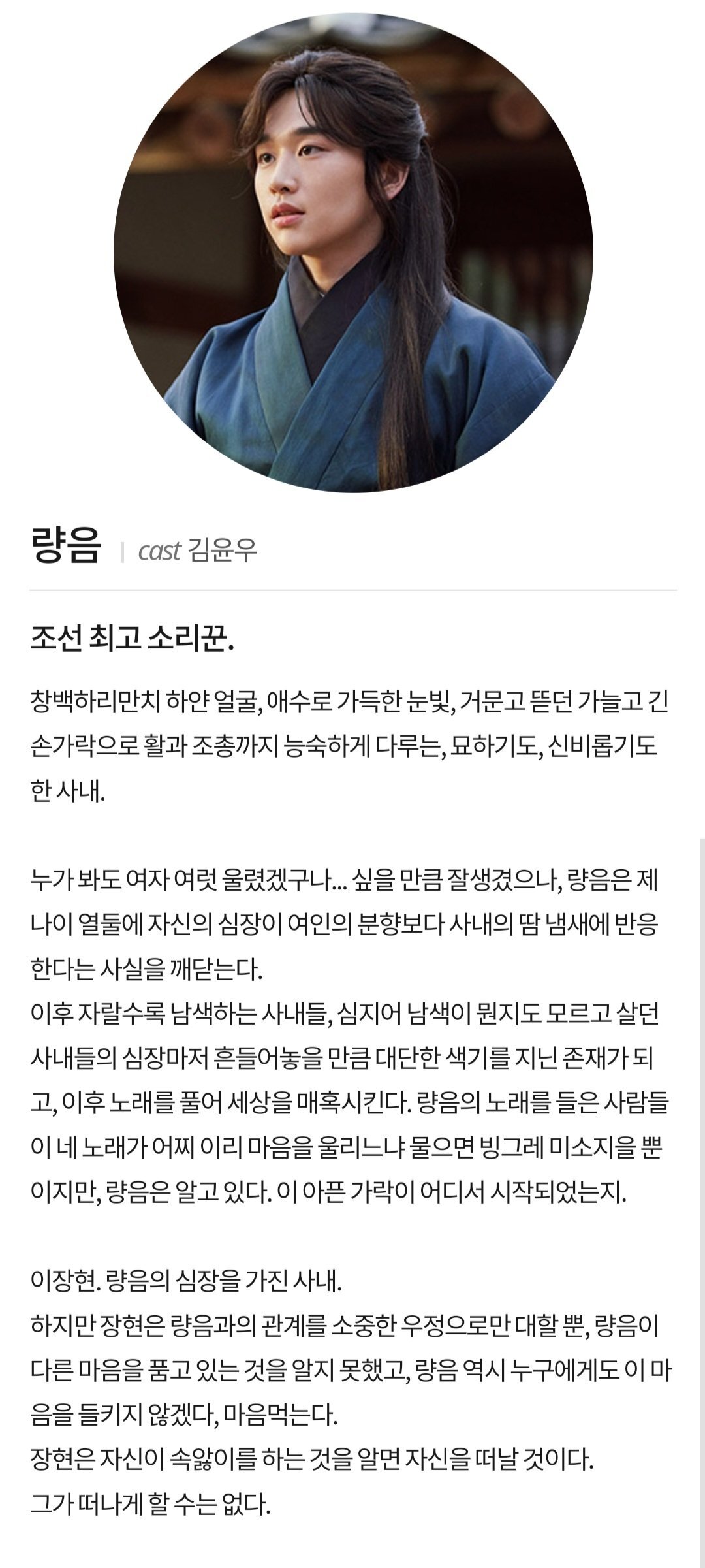 명창 역할이라 노래부르는 씬들도 꽤 되는데 배우 본체가 직접 불렀다고함 여기서 감긴 사람들 많은듯..