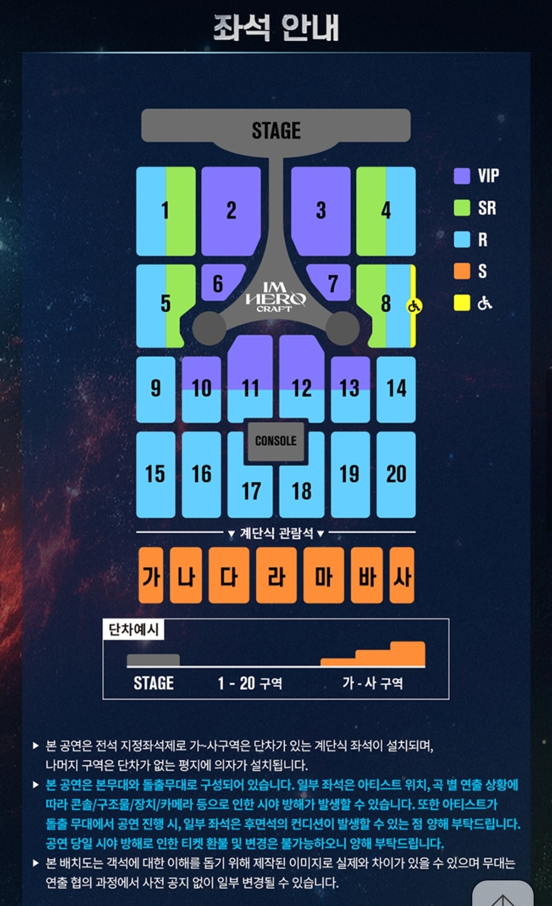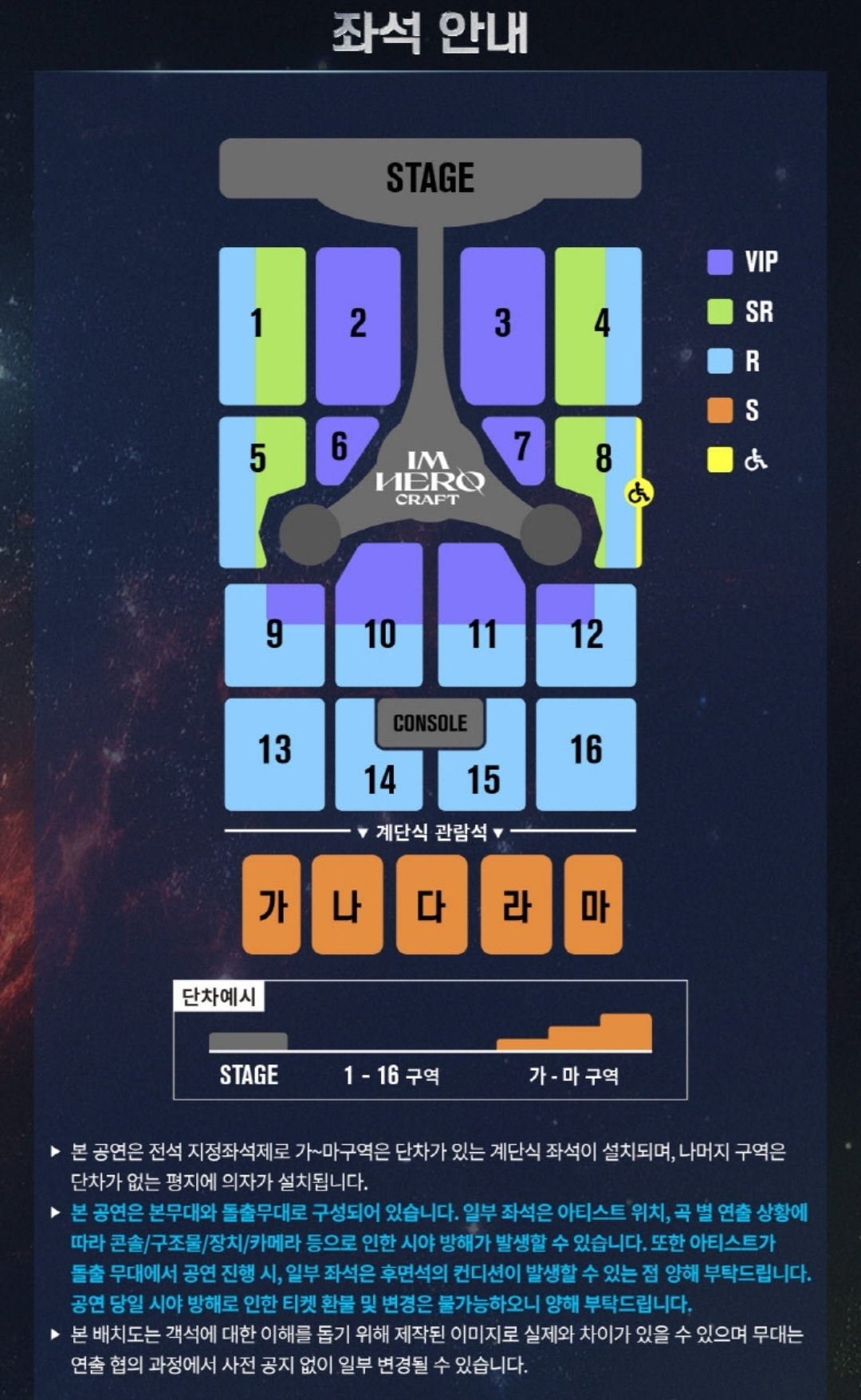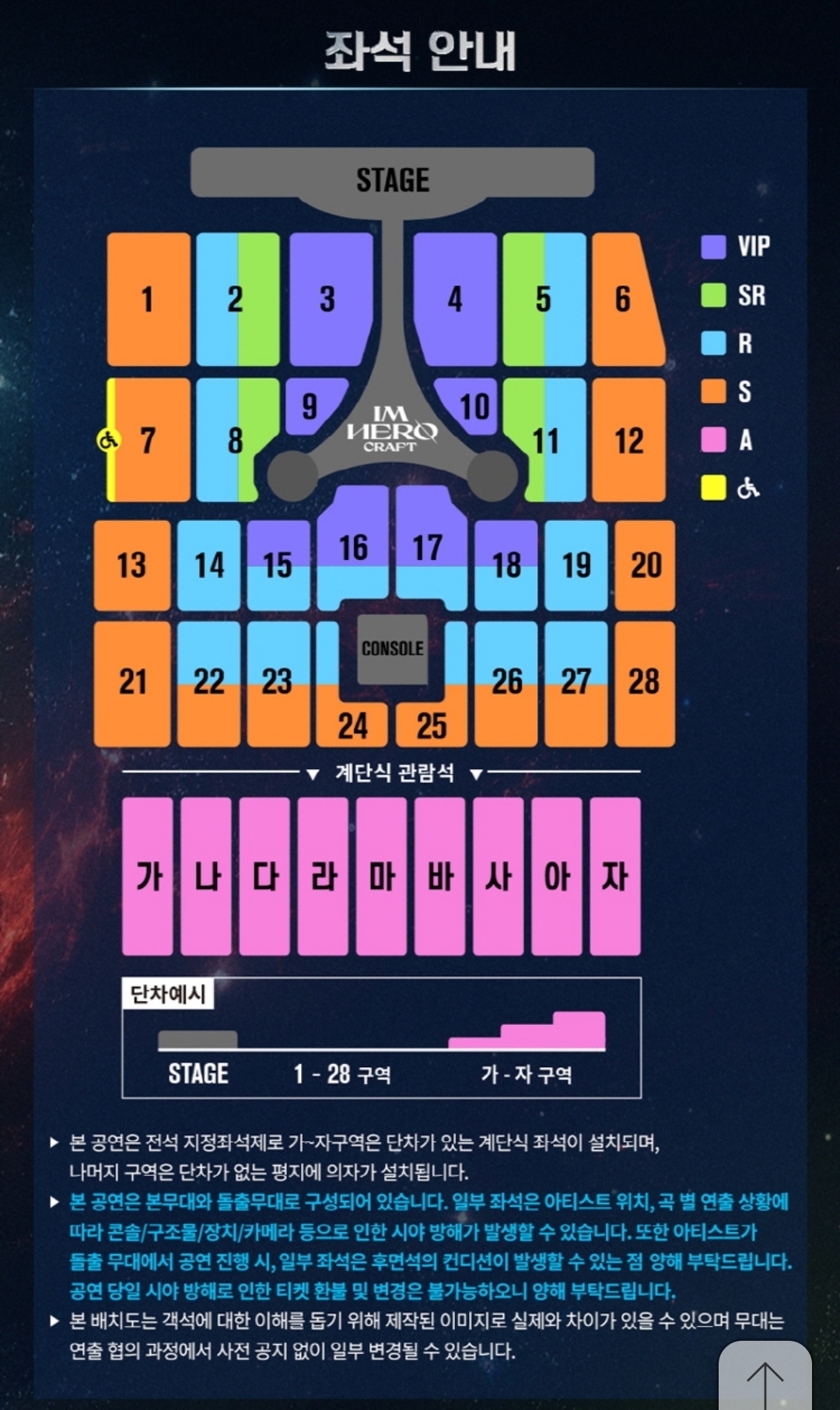 구역 세분화 되어 있고 VIP석 최소화하고 같은 구역이라도 시야에 따라 차등을 줌