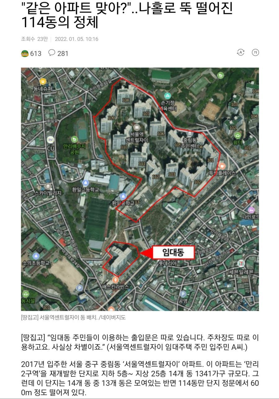 건설사는 왜 분양주민과 임대주민을 분리 하는지