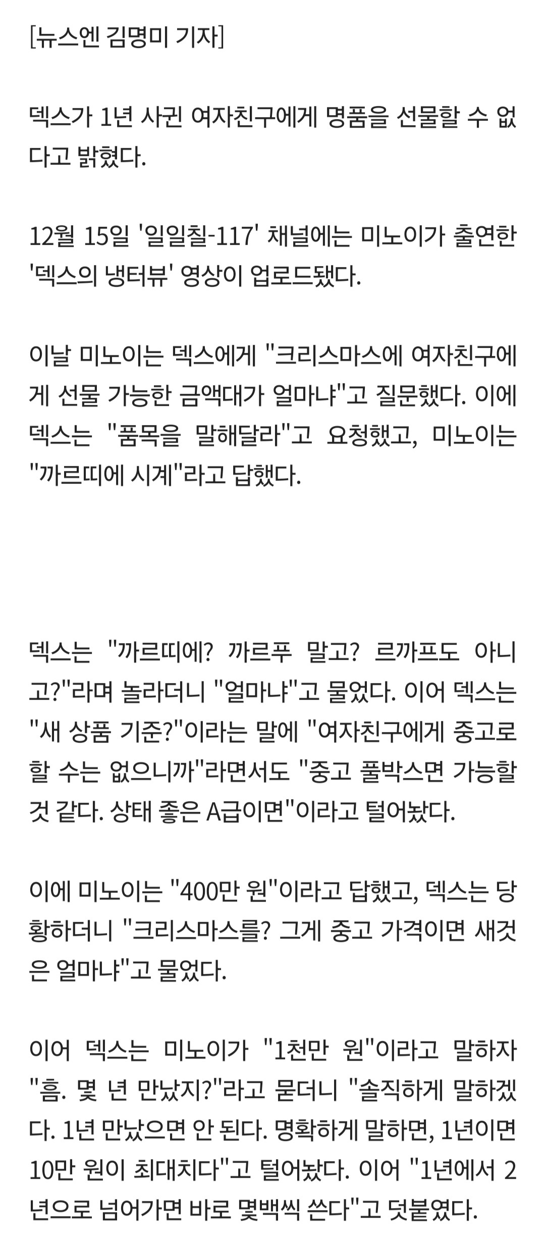 1년 만났는데 천만원은 좀..