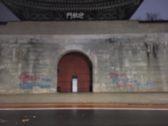 경복궁 영추문과 고궁박물관 담장이 스프레이 낙서로 훼손되었습니다.
