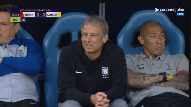 동점골을 먹힌후 많은 생각을 하게되는 두 감독의 대조적인 표정