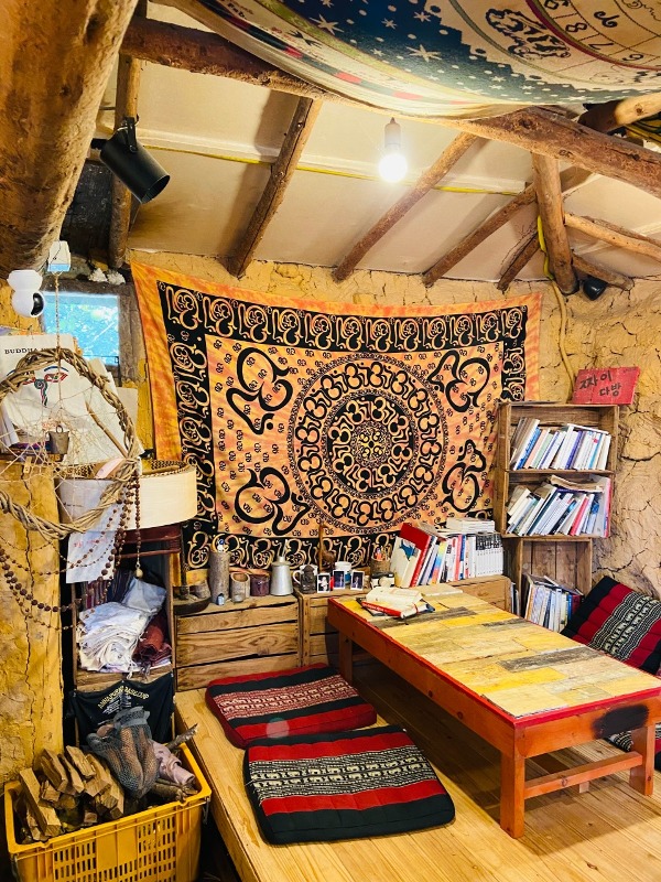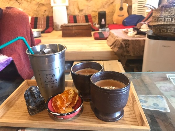 BTS 지민, 뷔 다녀간 카페인데 내부 인테리어가 좀 독창적임 짜이는 향신료 향이 강하지 않아서 처음 접하는 사람도 ㄱㅊ할 듯??