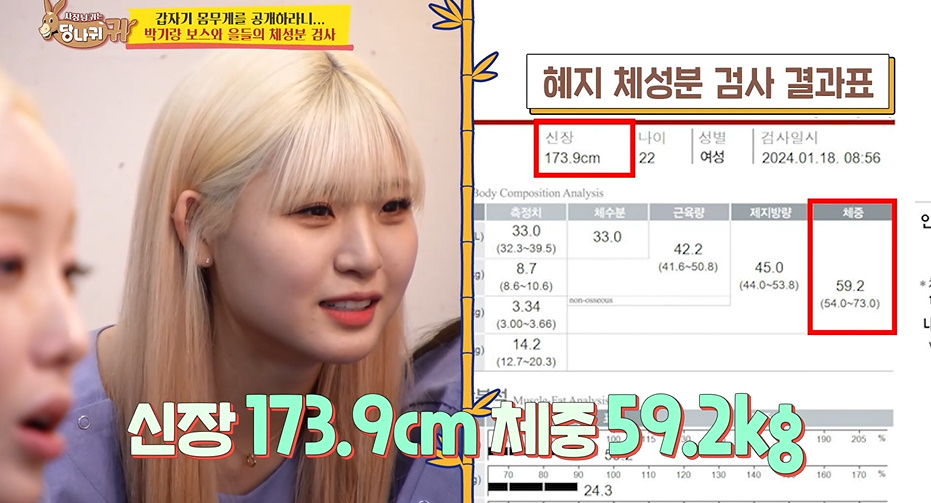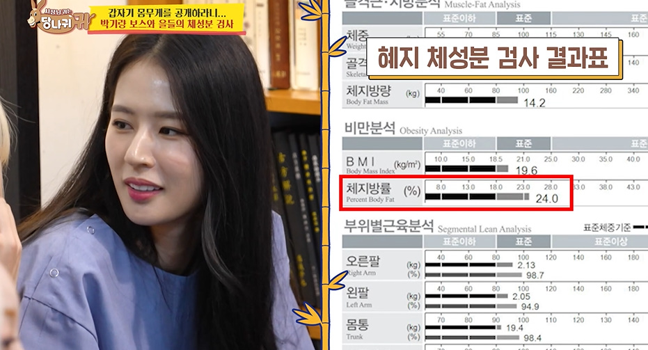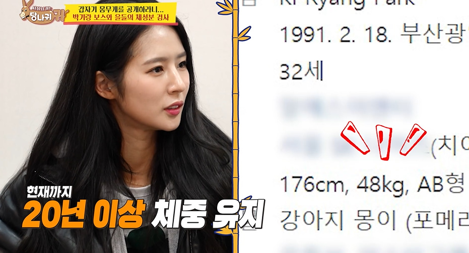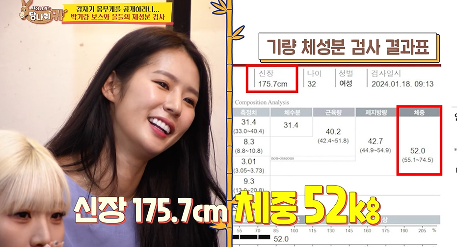 드디어 박기량 체성분 검사 결과표가 나왔는데 결과는