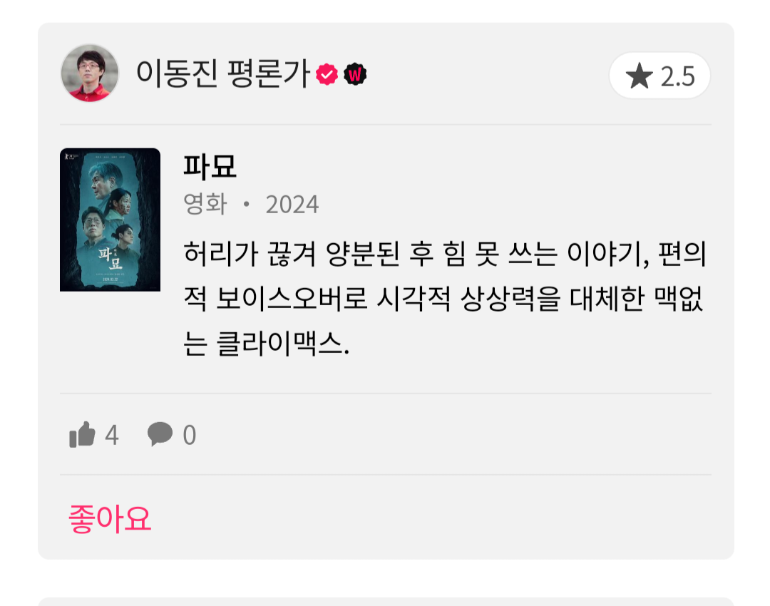 | 파묘에서 호불호 많이 타는듯한 파트 (0) | 2024.02.25 |