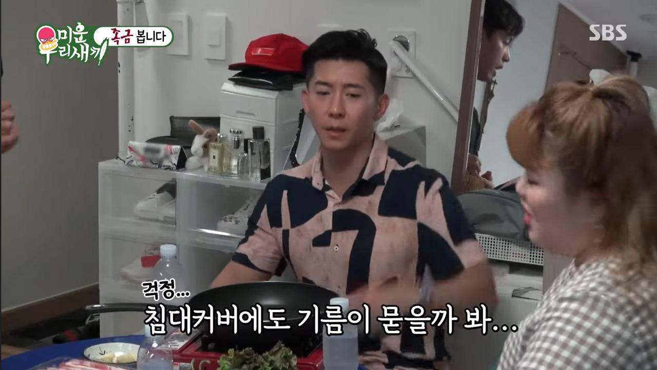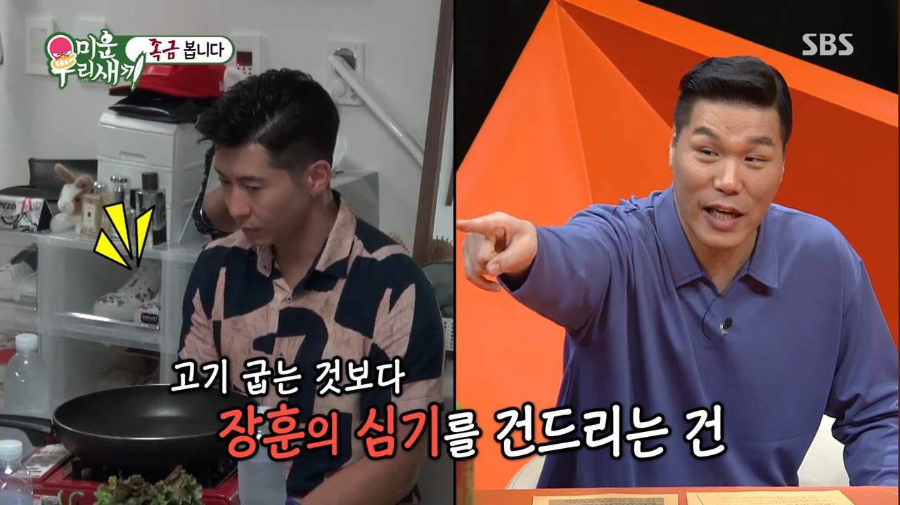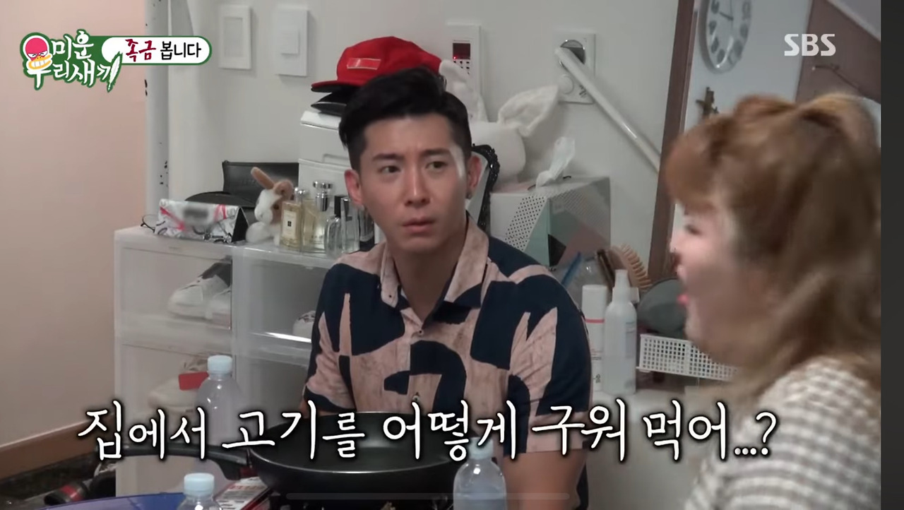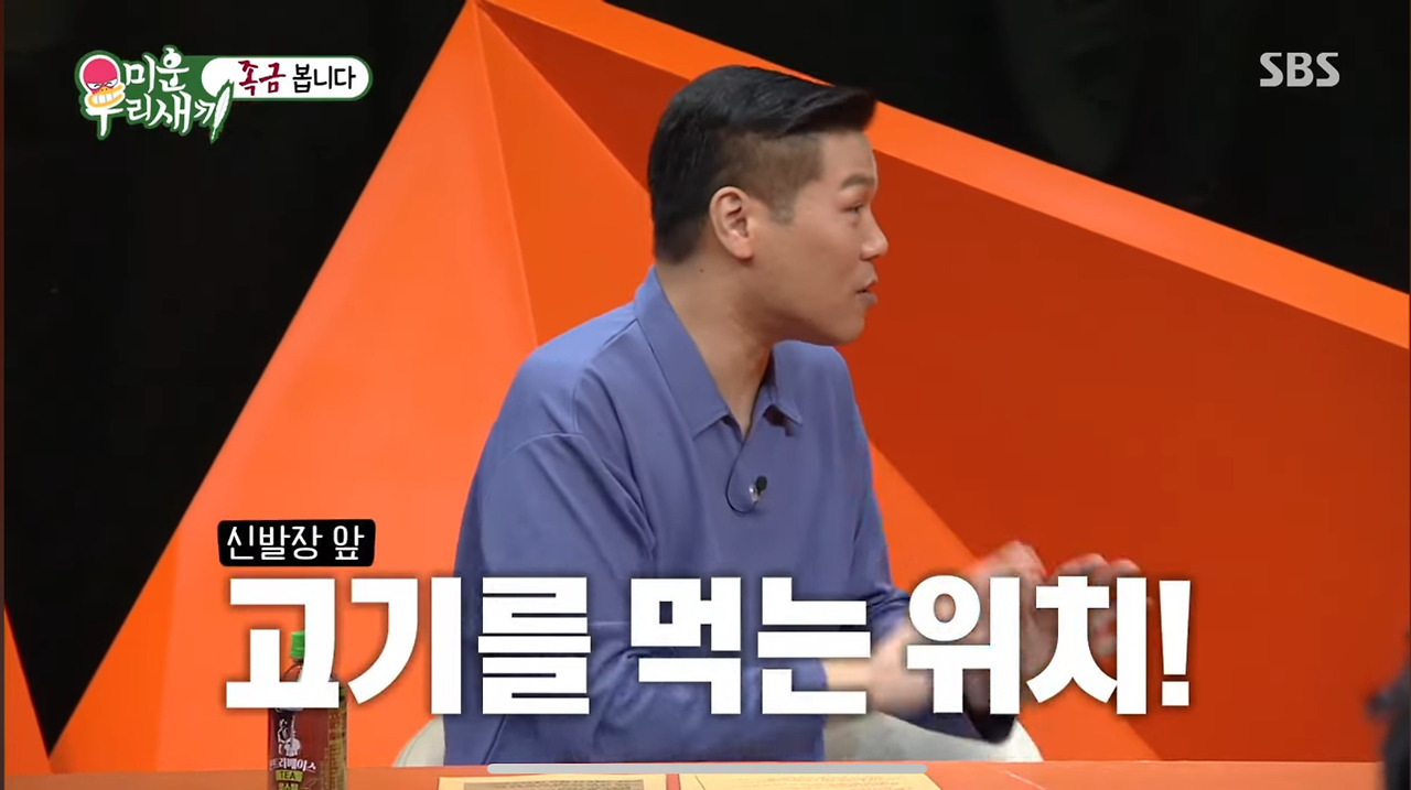 서장훈 : 냄새가 나면 환기를 시키고 기름이 튀면 딱으면 된다. 근데 신발장 앞에서 고기를 왜 구워먹냐
