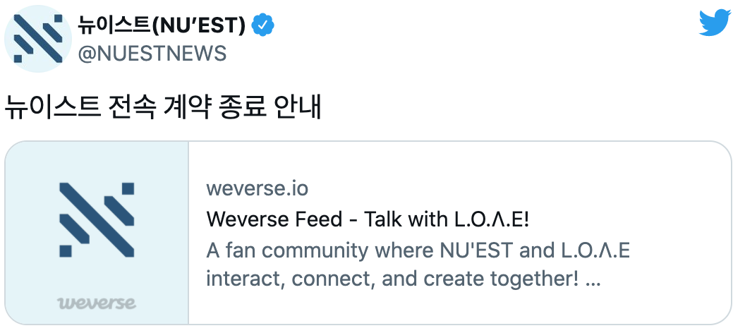 “뉴이스트 전속 계약 종료 안내 https://t.co/xf0nbxaueN”