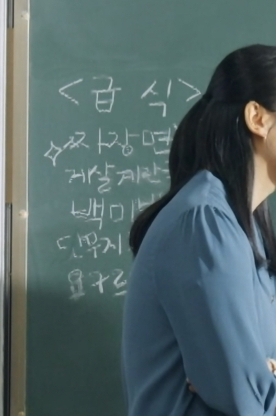 칠판에 적혀있는 급식 메뉴