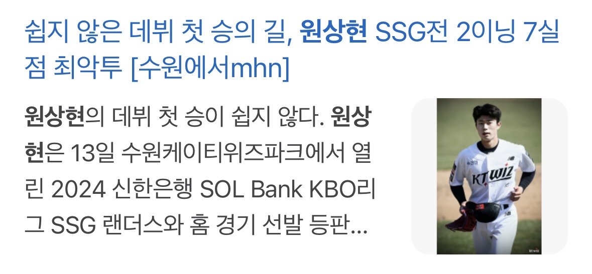 주어는 KT 위즈 24년 1라운드 고졸 루키 원상현