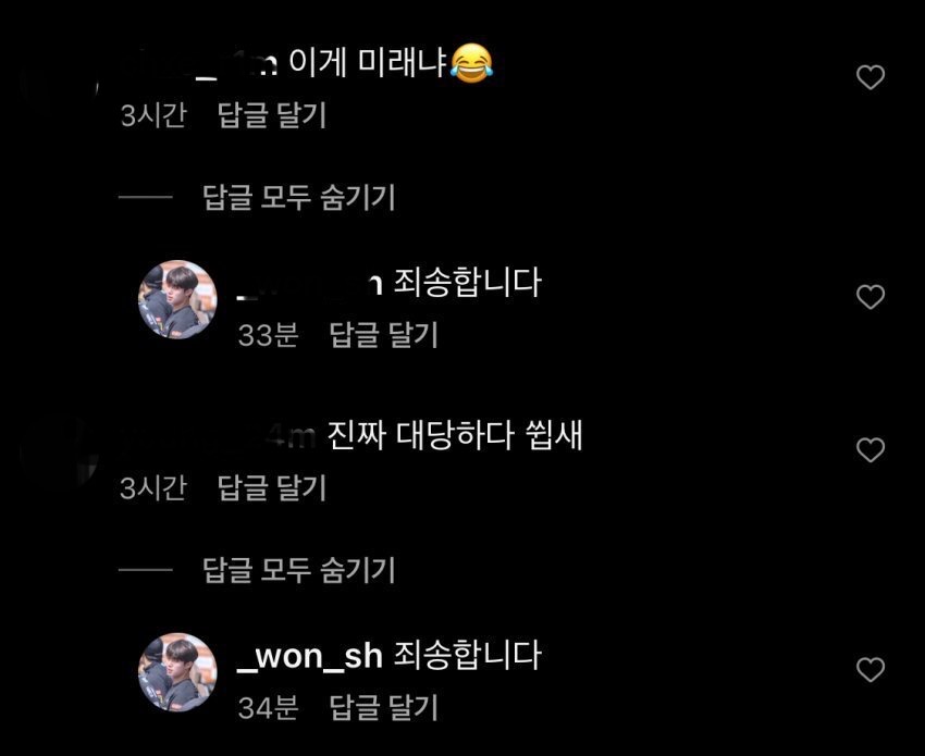 하나하나 죄송하다고 사과 댓글이 달림