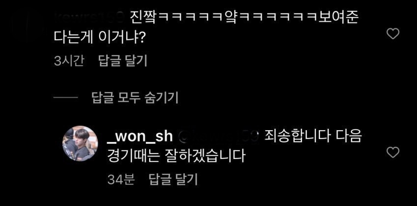 경기 직후 원상현의 인스타그램에는 악플들이 달리는데