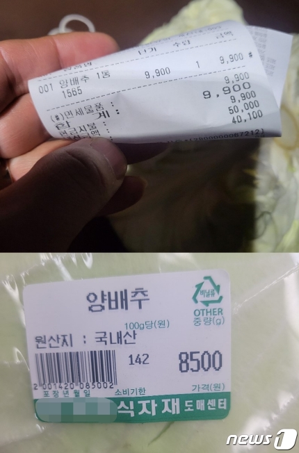 이어 "양배추 부족해서 또 사러 왔는데 너무 물 먹은 양배추라 낱개로 샀더니 (1개에) 만원"이라며 영수증을 공개했다. 영수증에는 양배추 1통이 9900원이라고 적혀 있었다.