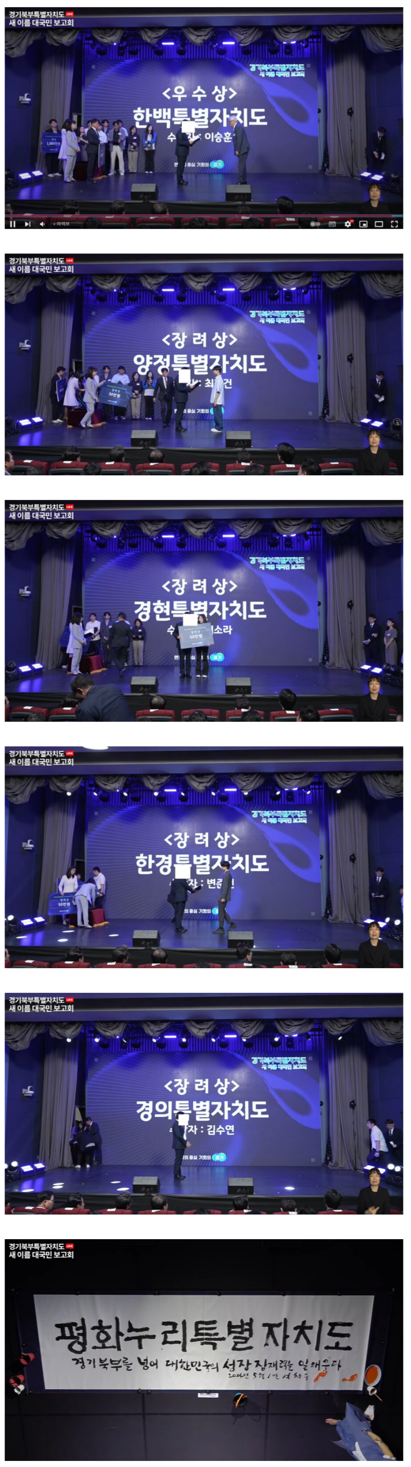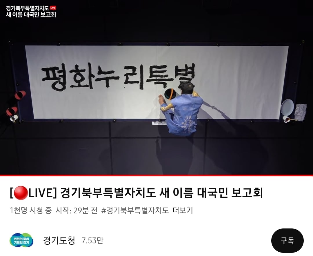 경기북부특별자치도 이름 공모전 시상한 장소 = 평화누리홀