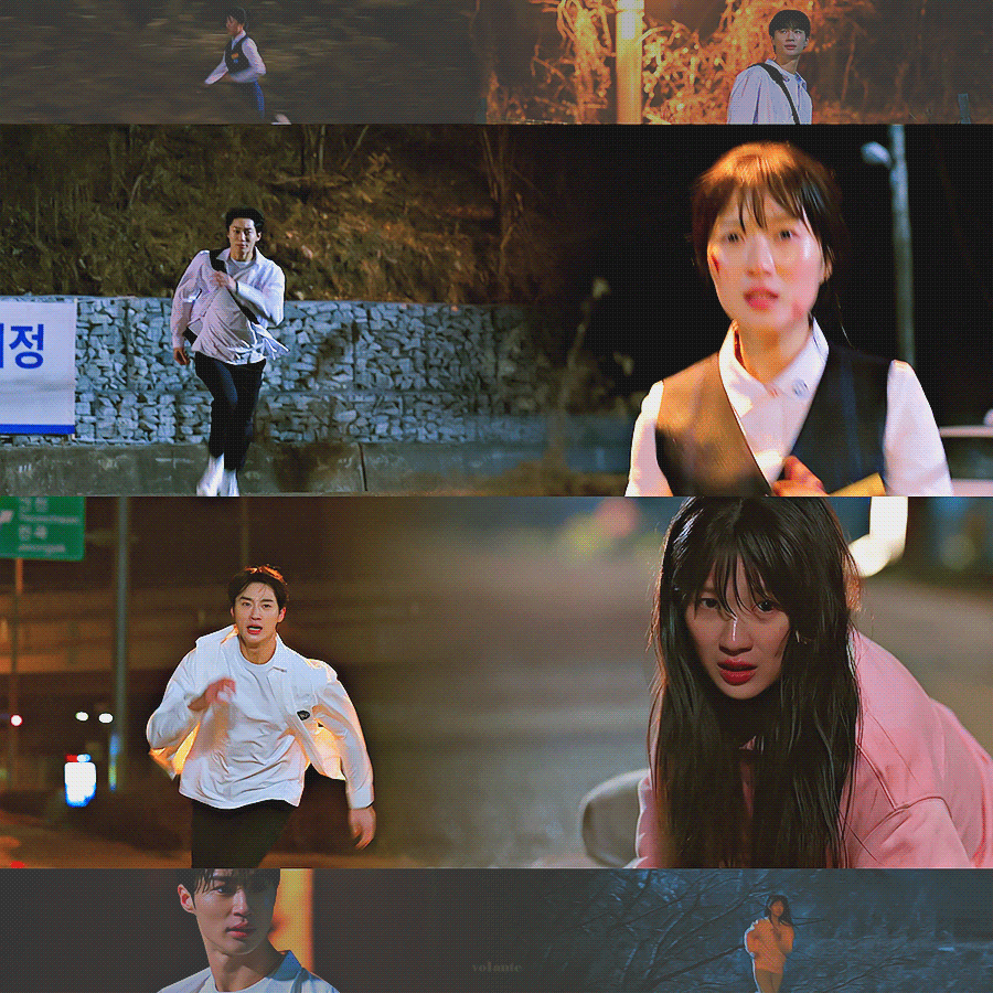 사람을 만난 여주는 긴장했던 몸에 힘이 풀리고 남주쪽으로 달려감. 보통 목격자가 나타나면 그냥 갈만한데 우리의 싸패 연쇄살인범은 그딴거 없음. 안도하는 여주를 그대로 차로 치고 여주는 의식을 잃은 채 저수지에 빠짐