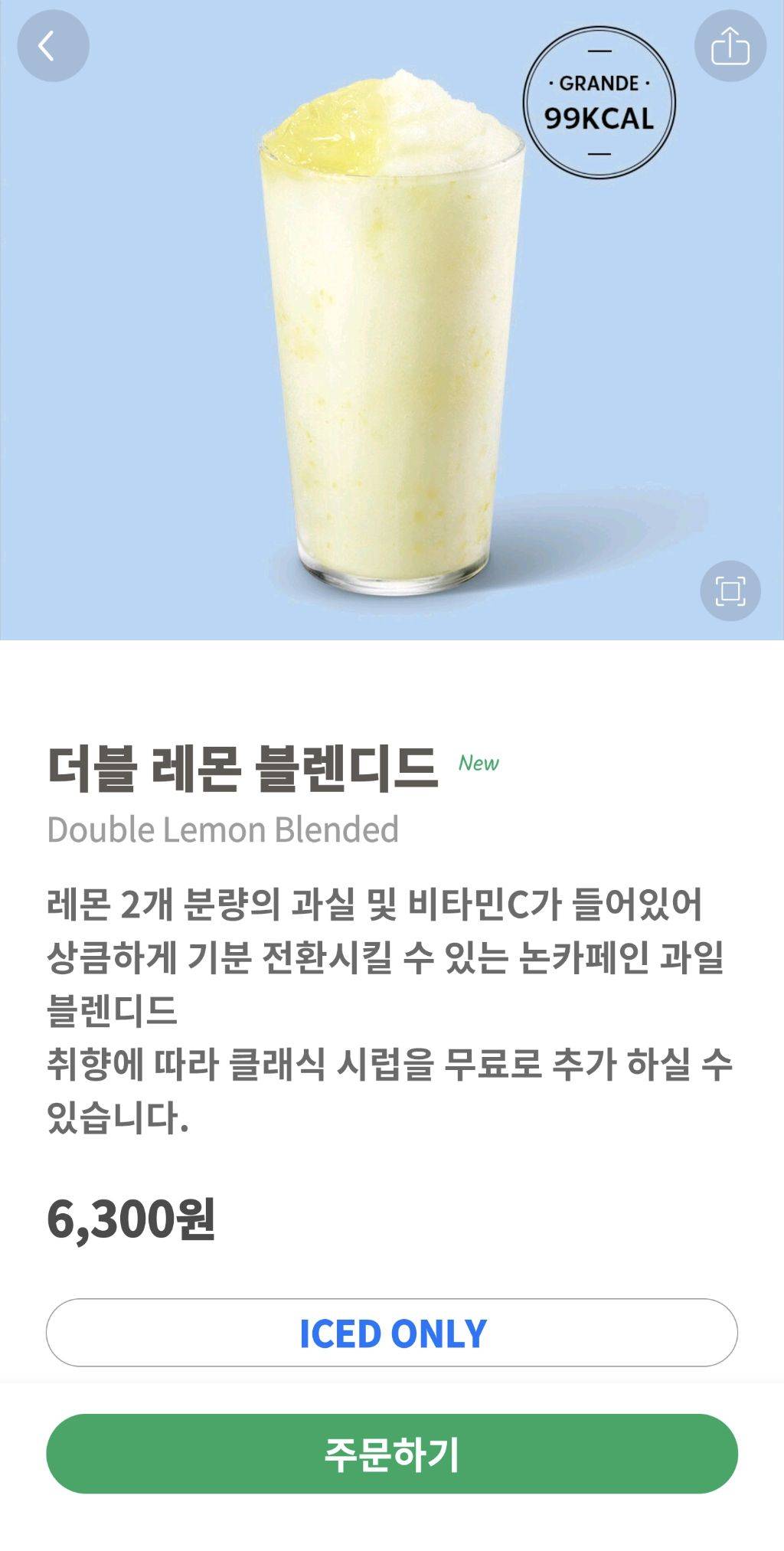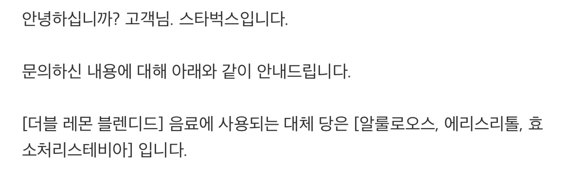 스타벅스 더블 레몬 블렌디드에 사용된 대체당