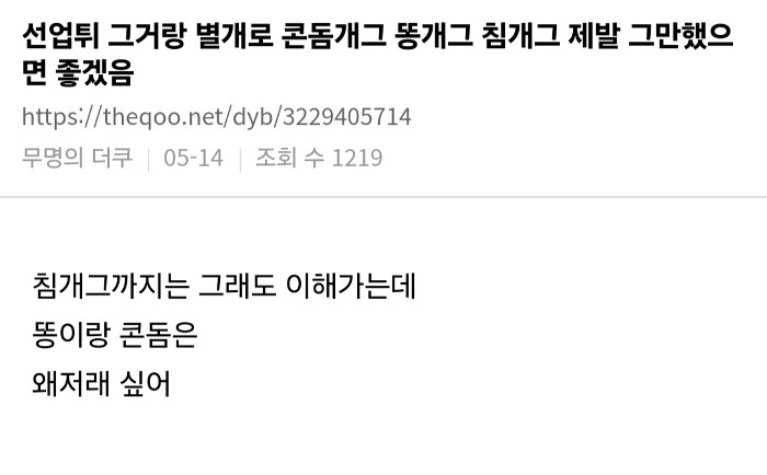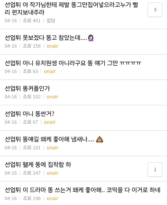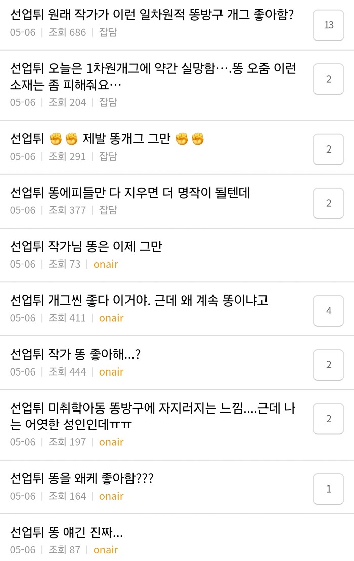 거의 매주 나오고있는 똥 변기 콘돔 속옷 등 생리 개그소재
