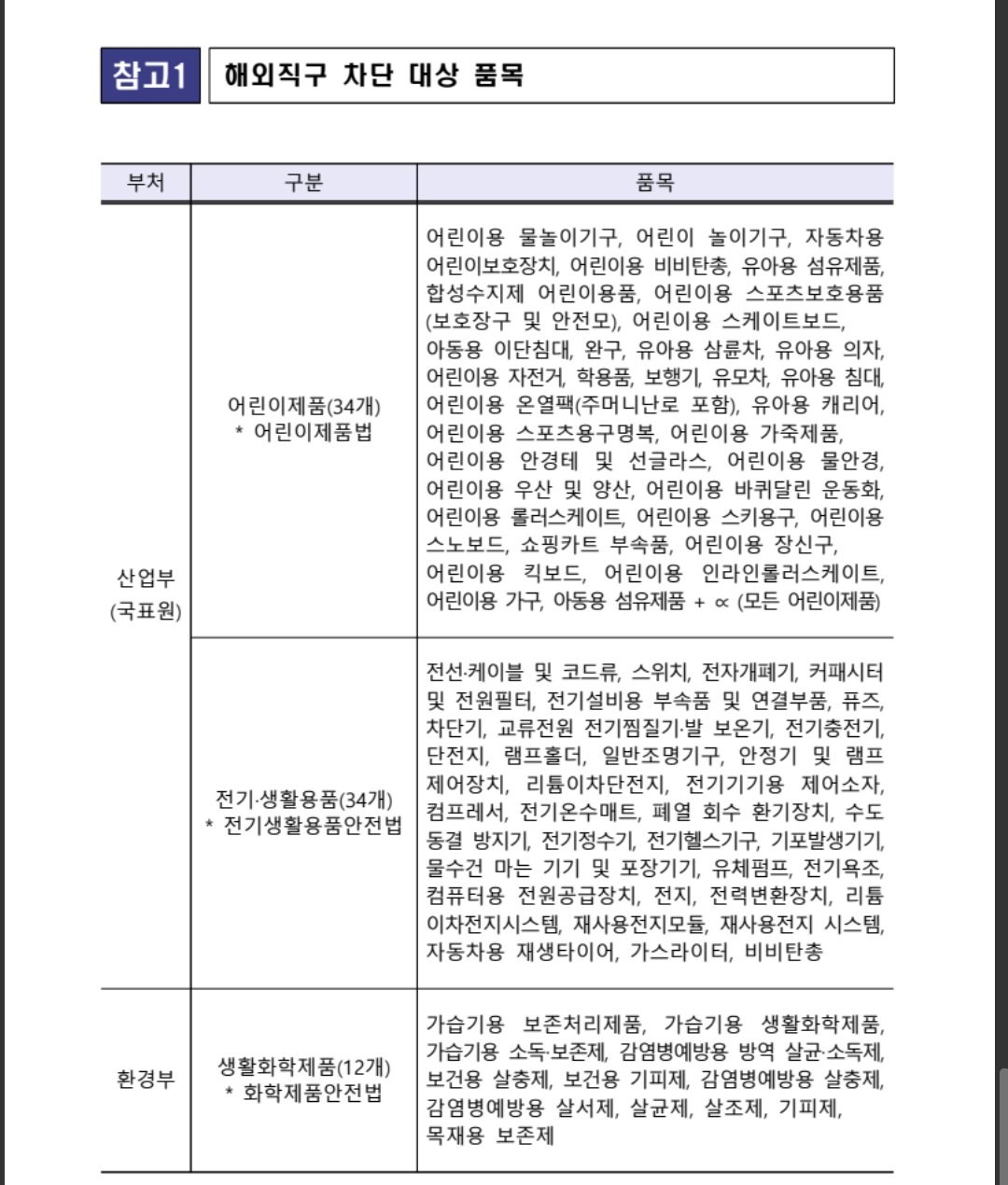 위 총 80개 품목은 내달부터 KC인증 등 안전 인증이 없는 경우 직구 원천 금지됨 (통관X)