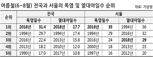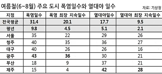 밤에도 최저기온이 30도 밑으로 떨어지지 않는 초열대야도 여러번 관측됨