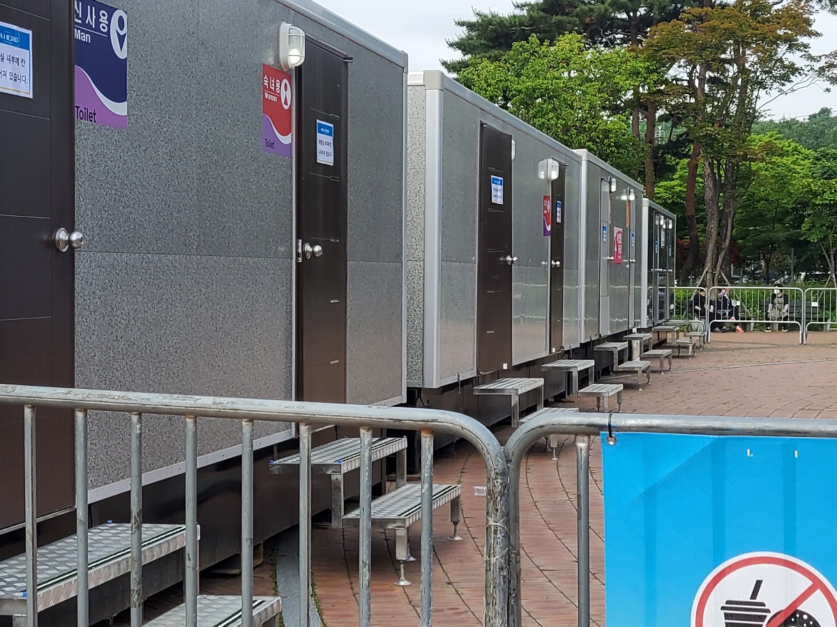 간이화장실도 곳곳에 많이 설치되어있음