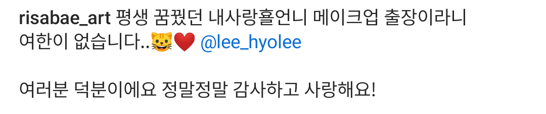 매번 해주던 스텝말고 이사배가 메컵 해줬다고 함ㅠㅠ