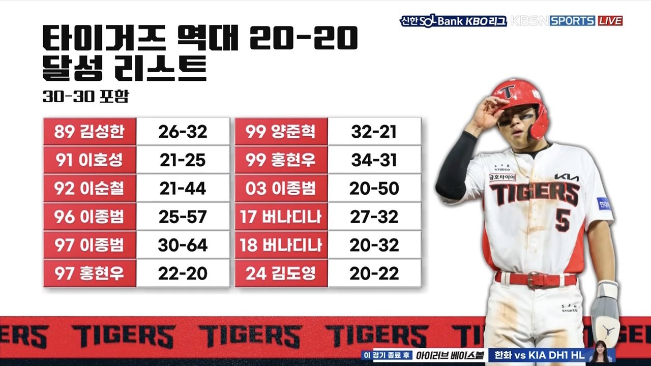 기아 타이거즈 ✨️슈퍼스타✨️김도영 20-20 달성