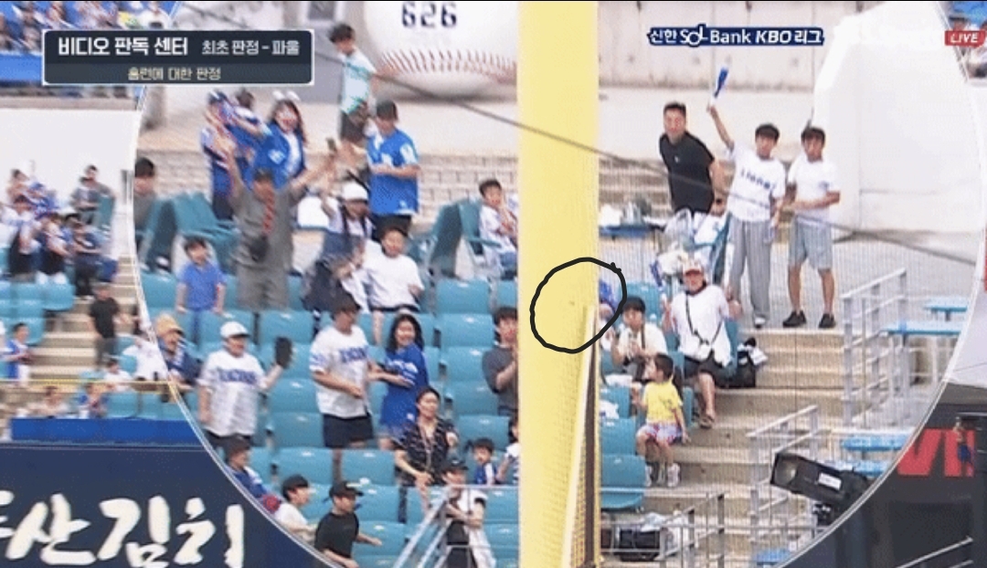 공이 폴대 맞고 폴대에 자국까지 남았지만 파울 판정