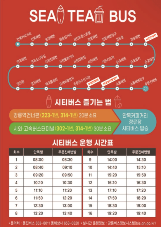 강릉자체가 버스타고 다니기 좋은 지역이여서 15~20분 내면 버스 다 탈수 있어