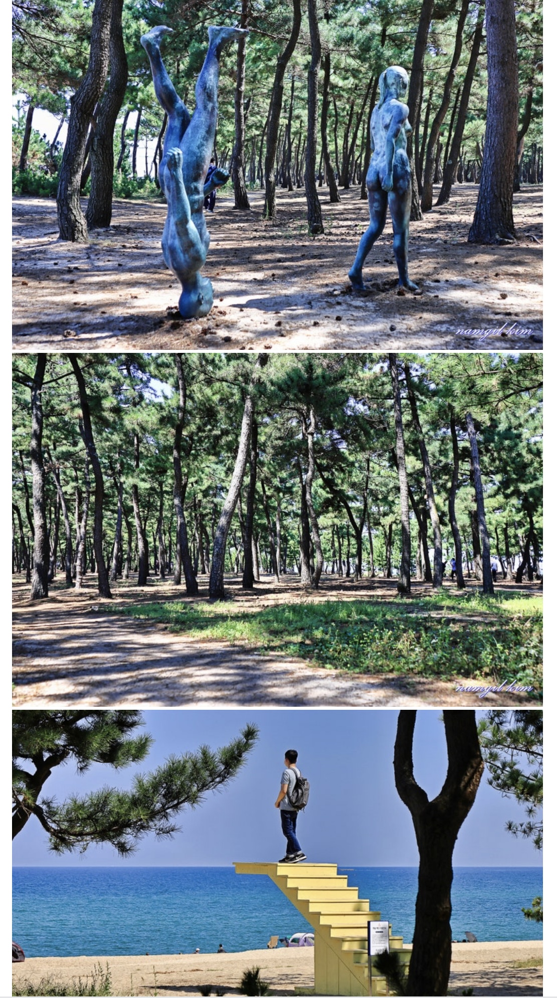 - 송정해변 ⭐ (개인적으로 강릉 대표하는 소나무와 바다, 조형물까지 완벽한 곳)