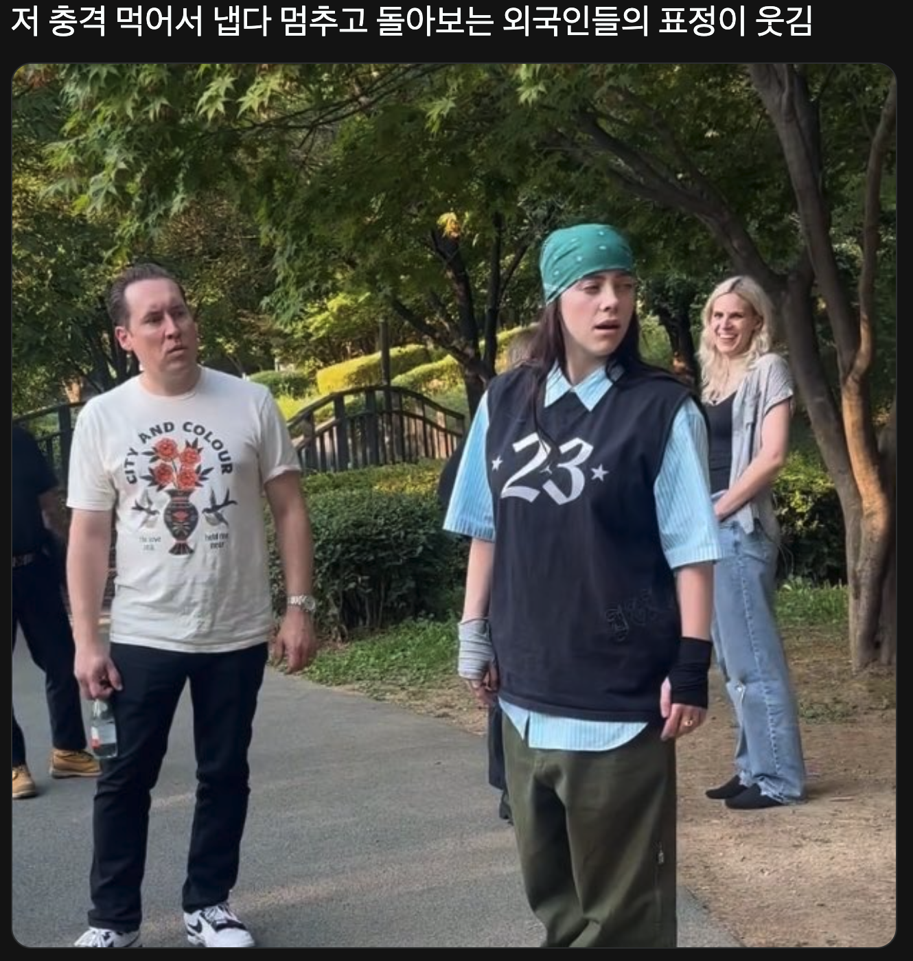 한국에서 등산할 때 신발 정리하는 스프레이 처음 봐서 다른 분이 제대로 사용하는 거 보고 충격 먹는 빌리 아일리시 왜 웃기냐