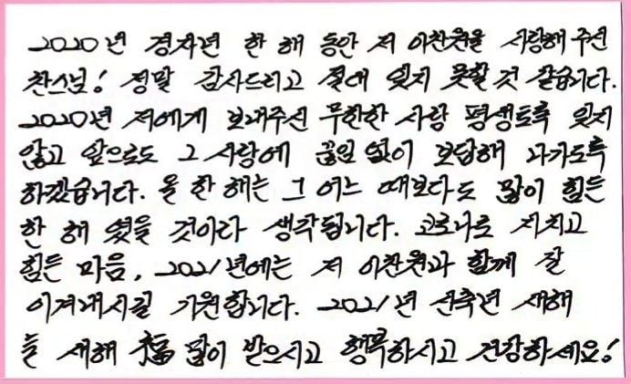 96년생이 아니라 최소 66년생 같다는 이찬원 글씨체