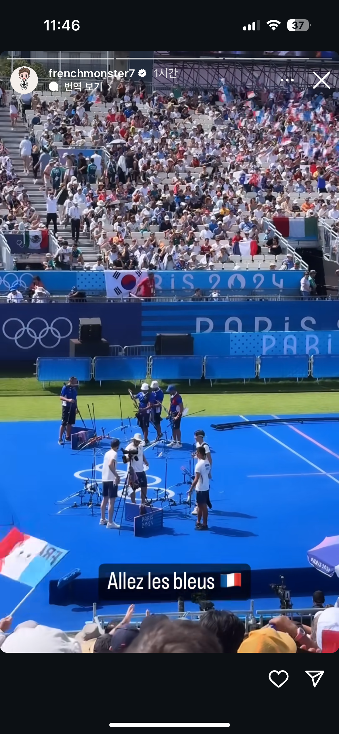 한시간 전에 알레 프랑스 응원ㅋㅋㅋㅋ