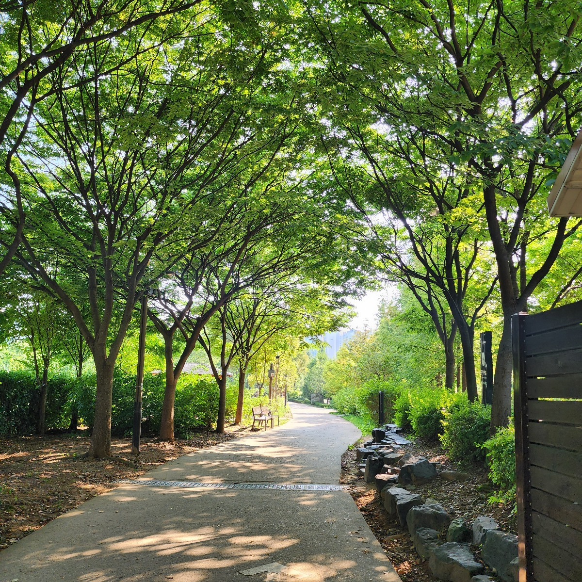 하천 중후반부는 다른 하천길이랑 별 다를바가 없는데, 하천 시작하는 쪽이 예쁘고, 진입하는 아파트단지 산책로가 예쁨.