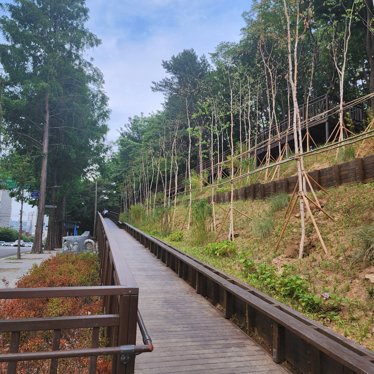 서초구 우면산 무장애 데크길. 최근 진입로 공사 끝남.
