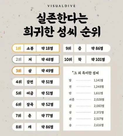 직접봤던 희귀성은 사공씨인데 순위에도 없구나;