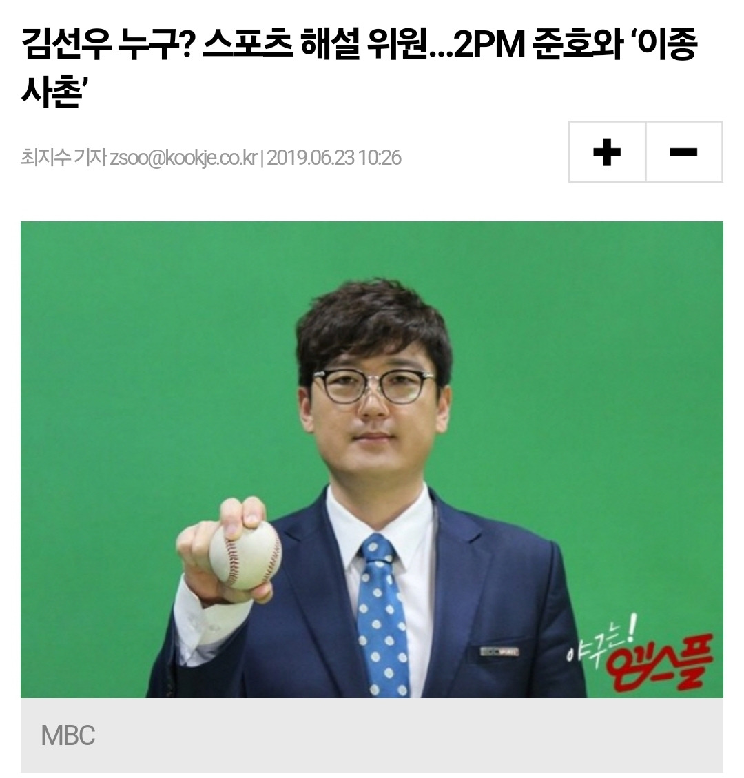 최강야구 중계하는 김선우 선수랑 이종사촌관계