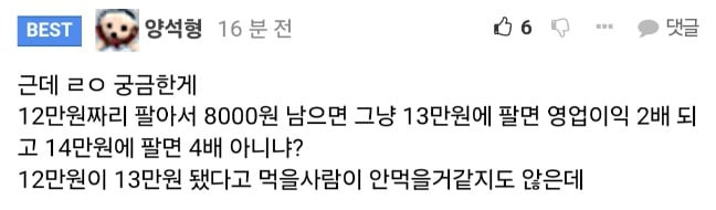 1~2만원 올려서 영업이익 몇 배 올리면 되는거 아니냐 의문 제기