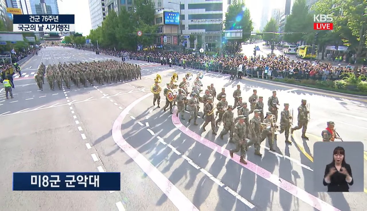 작년과는 달리 올해는 비 안맞고 행진하는 미8군 장병들